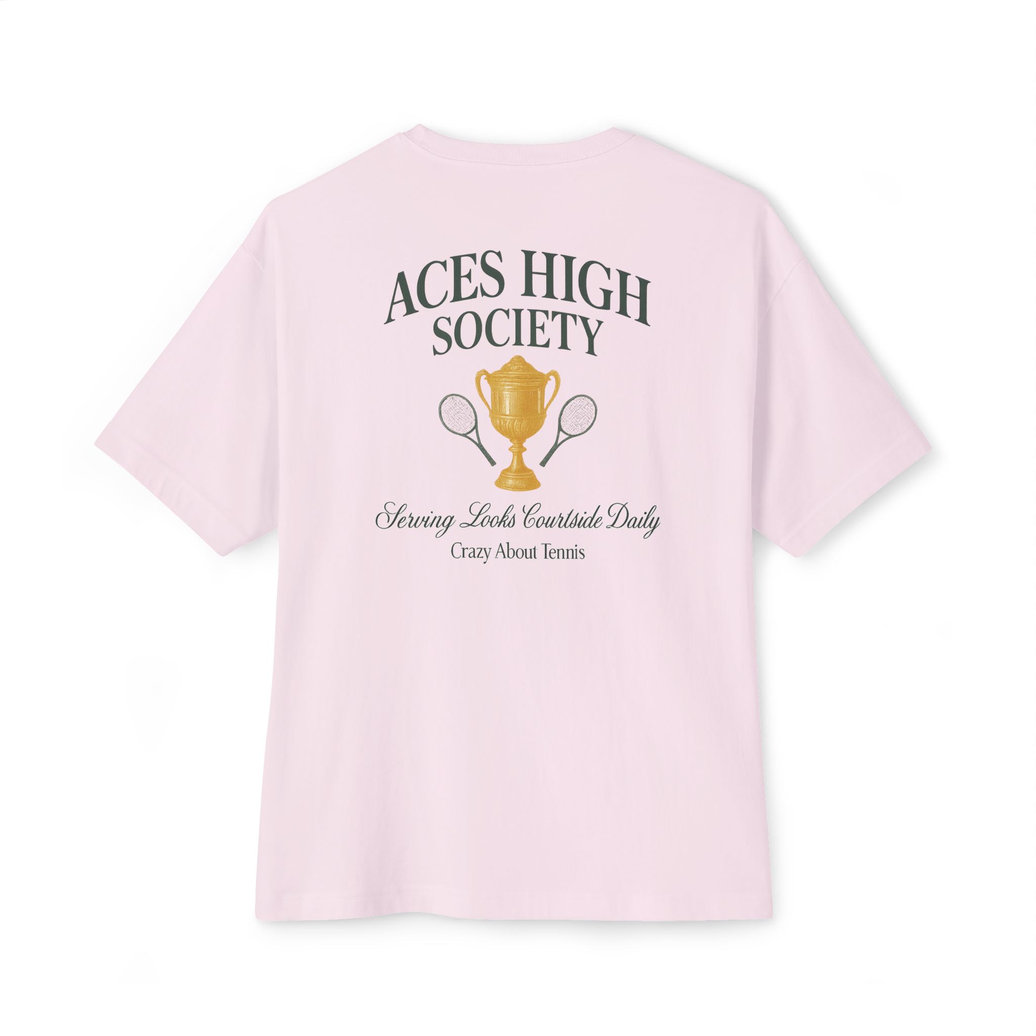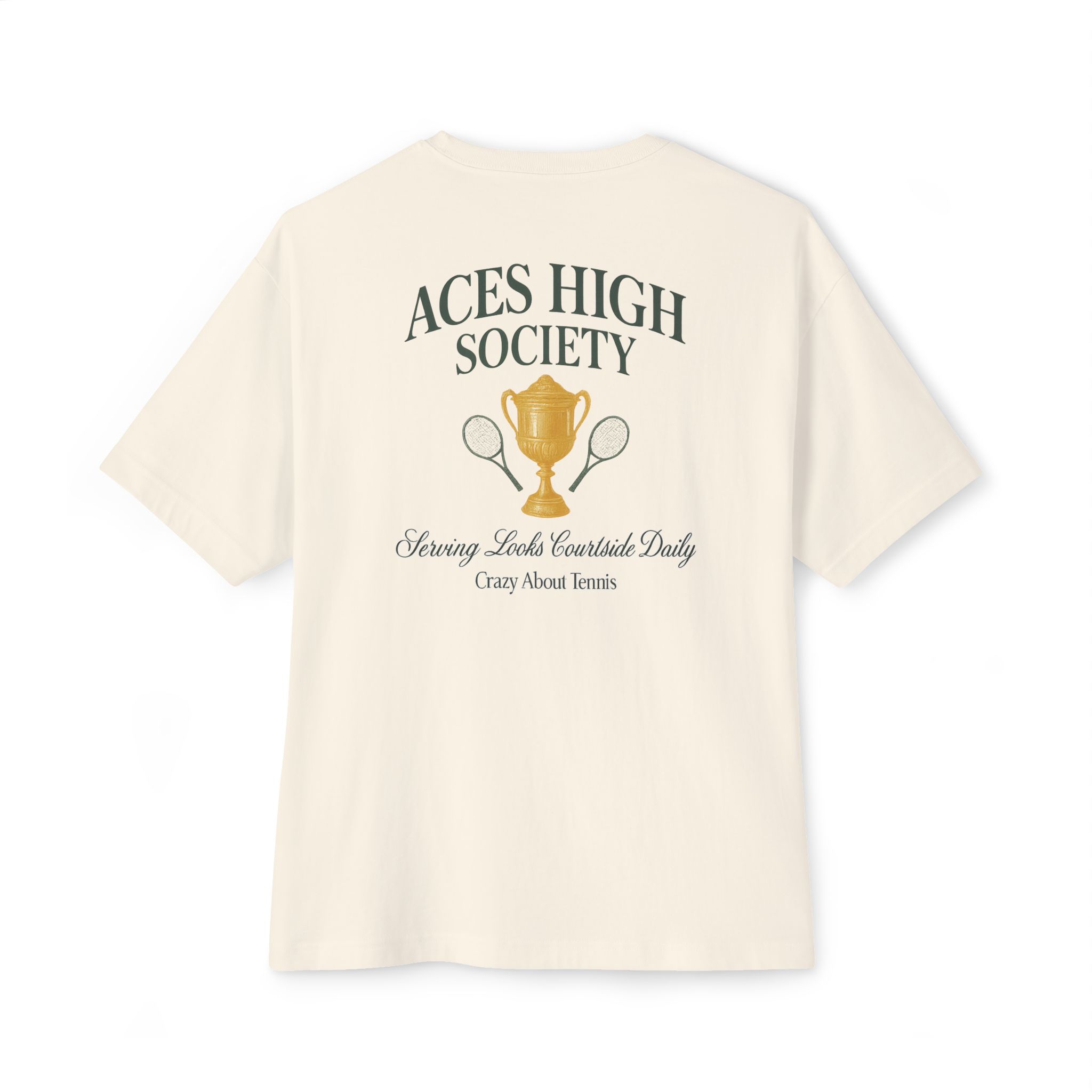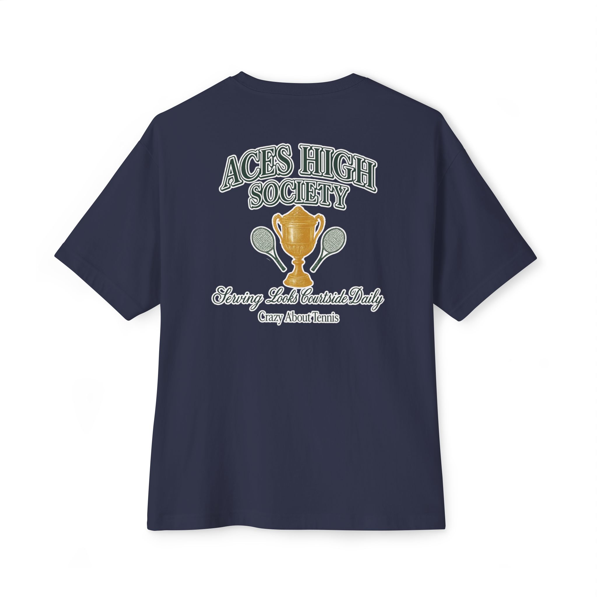 Game. Set. Match. Attitude. This tee is for the ones who treat tennis less like a sport and more like a runway. Featuring a gleaming trophy flanked by rackets, it’s varsity-preppy luxury satire at its finest. Whether you’re smashing serves or sipping spritzes, this piece is serving all day.