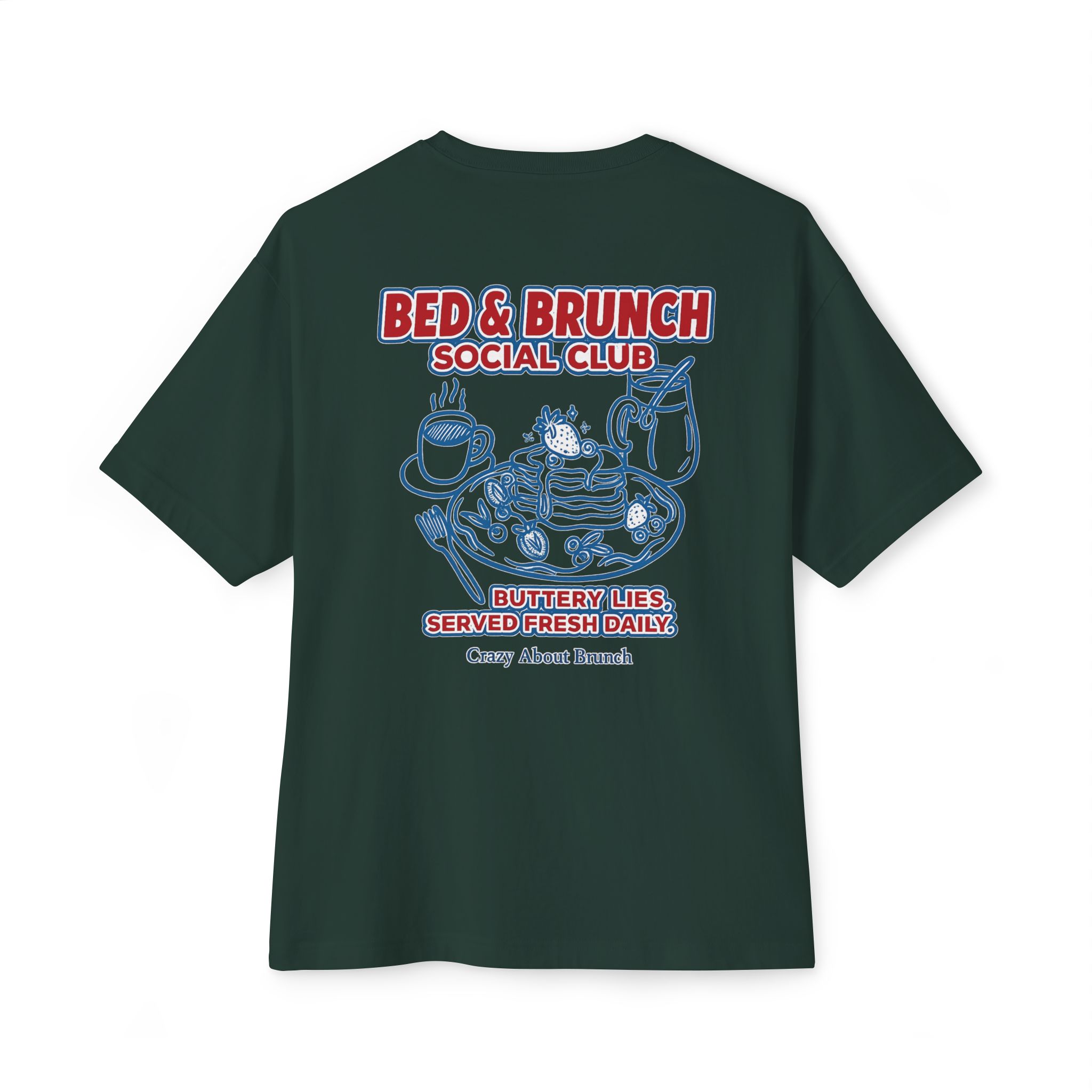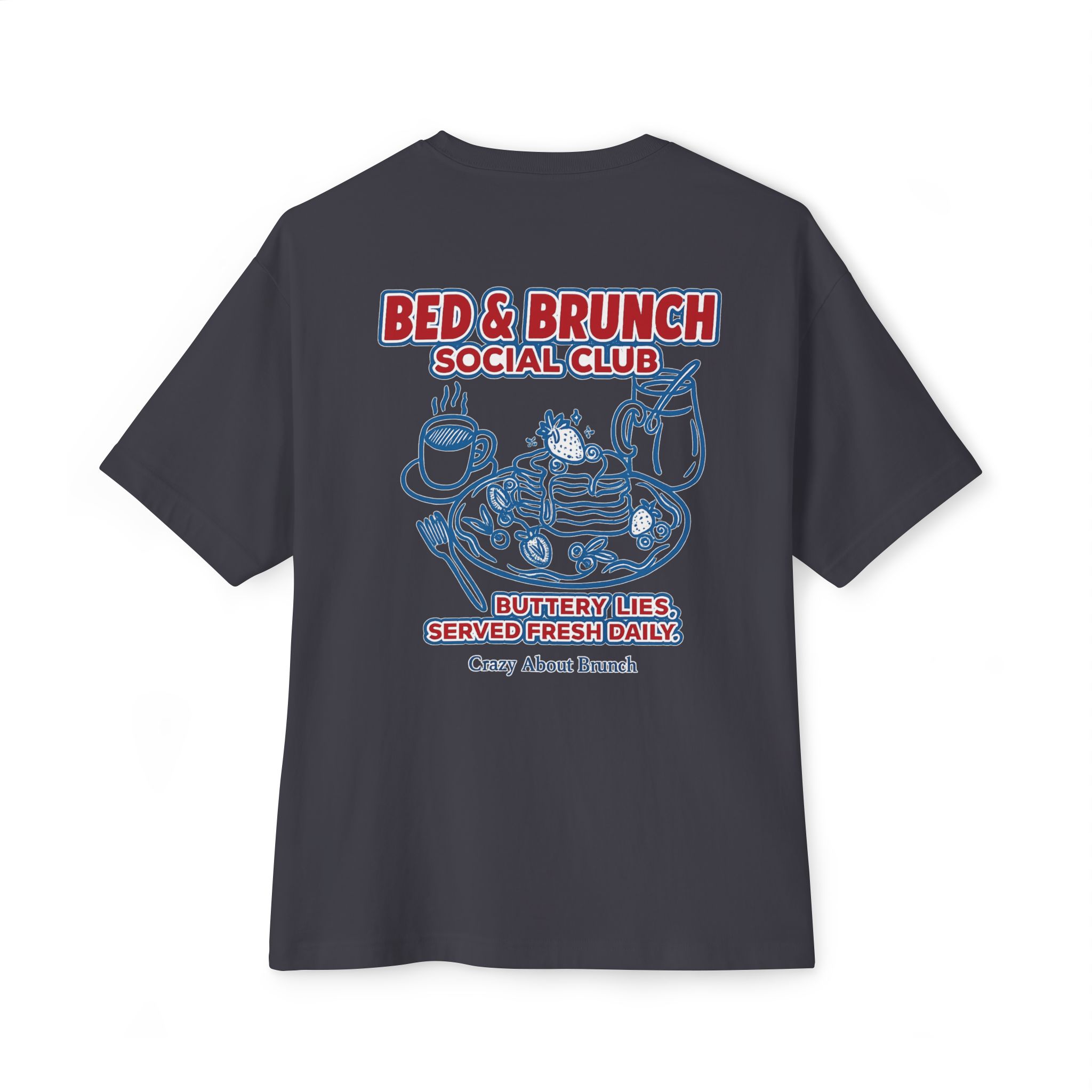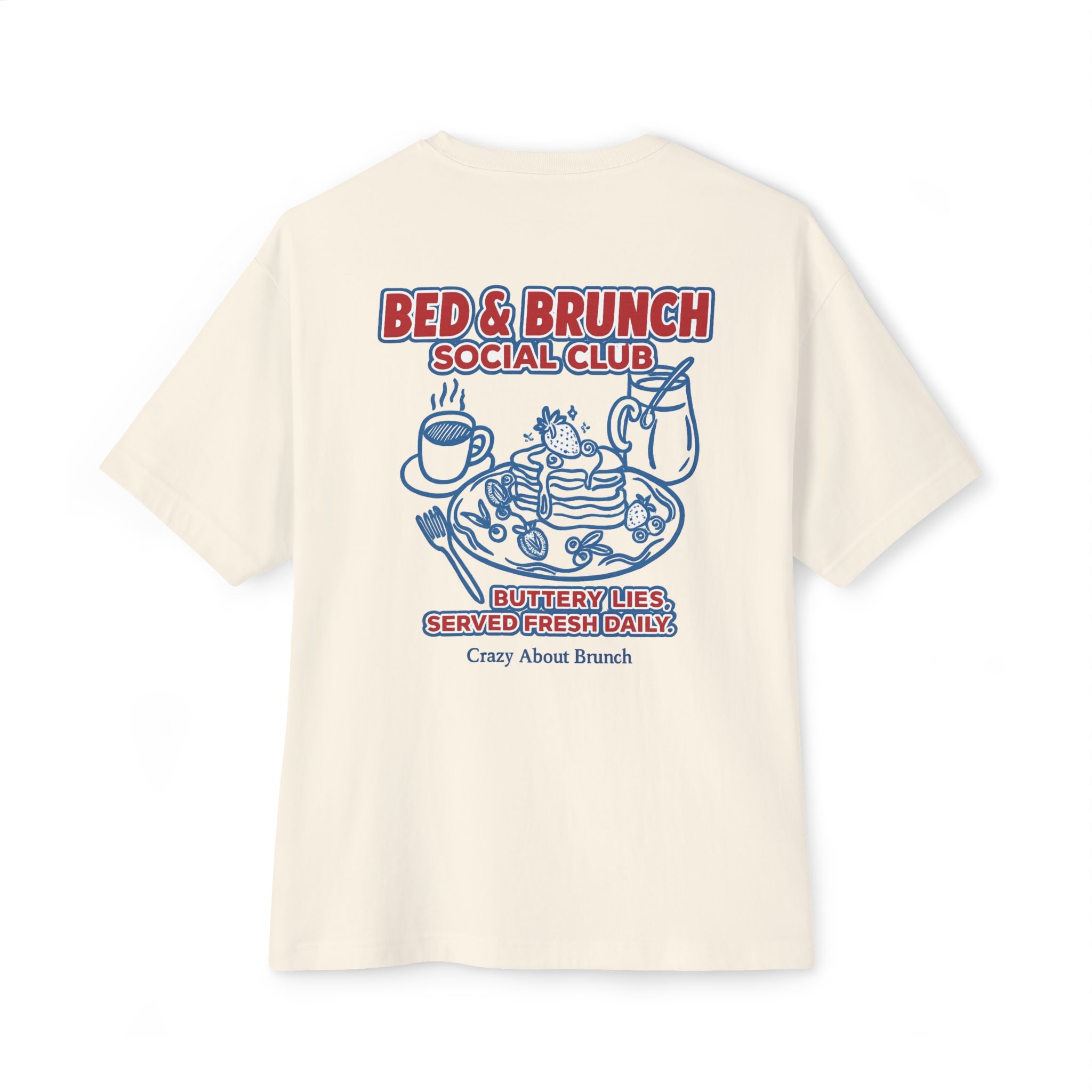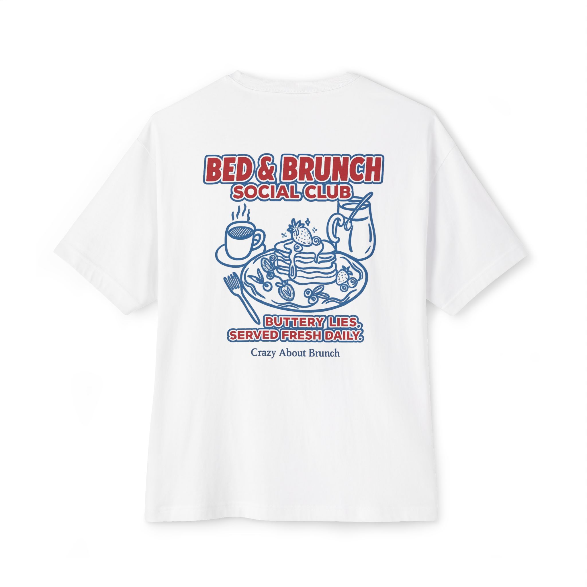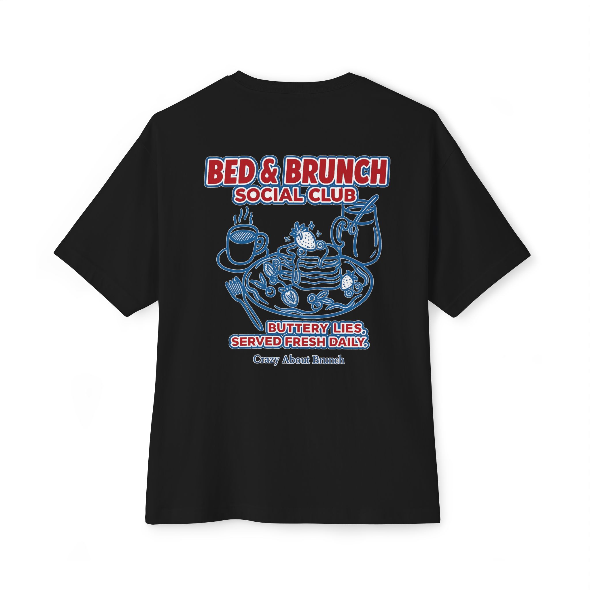 Buttery lies, served fresh daily — this indulgent tee is for those who thrive on slow mornings, sweet nothings, and bottomless mimosas. Equal parts cozy and chaotic, it’s your official brunching uniform (with a side of denial).
