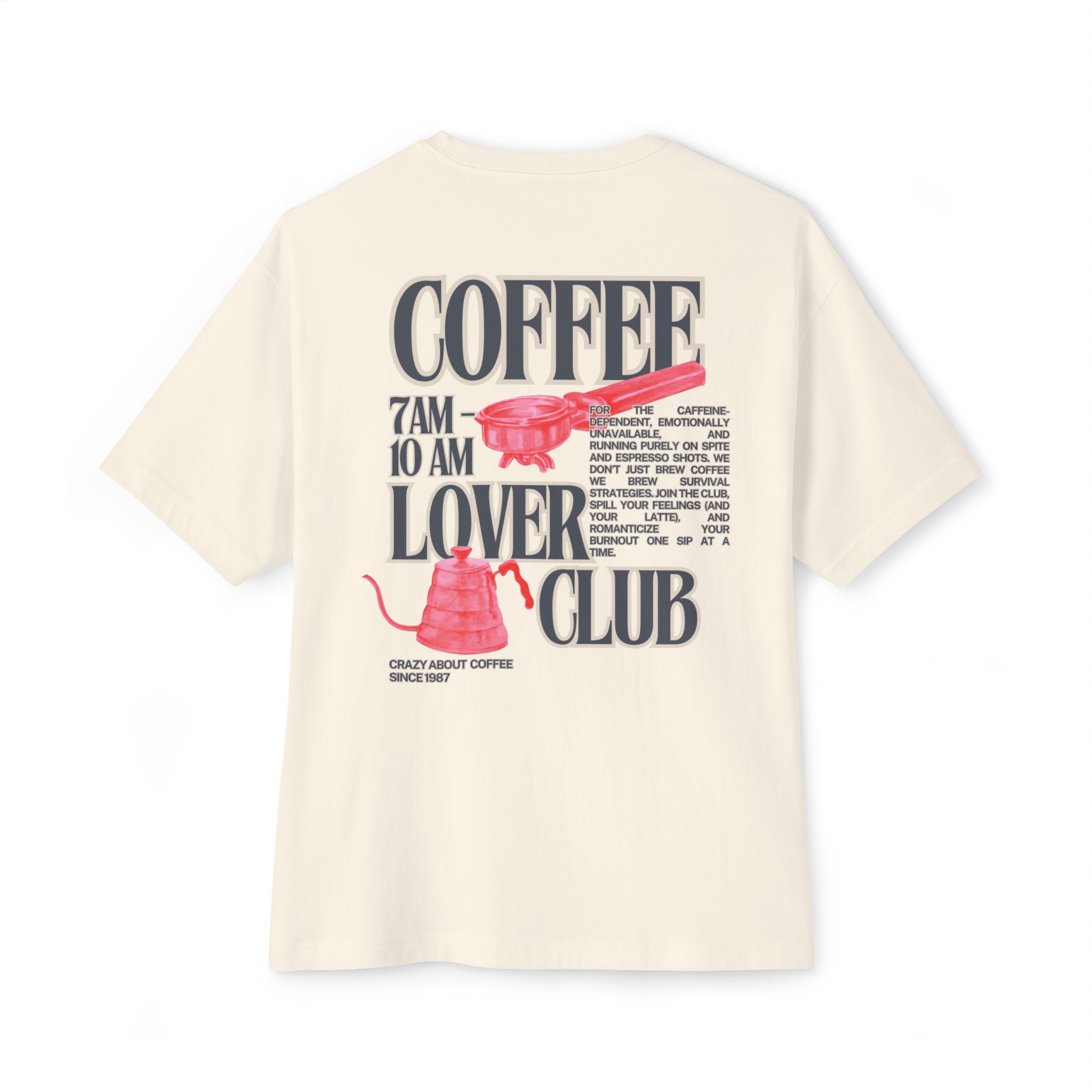 The Coffee Lover Club Vintage Tee isn’t just a shirt — it’s a lifestyle. With a retro-inspired design and just the right dose of burnout energy, it’s made for the ones who’ve turned their coping mechanisms into a morning routine.