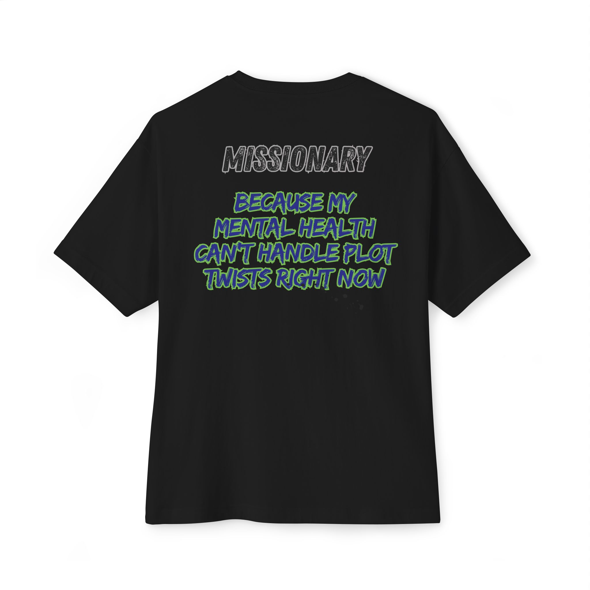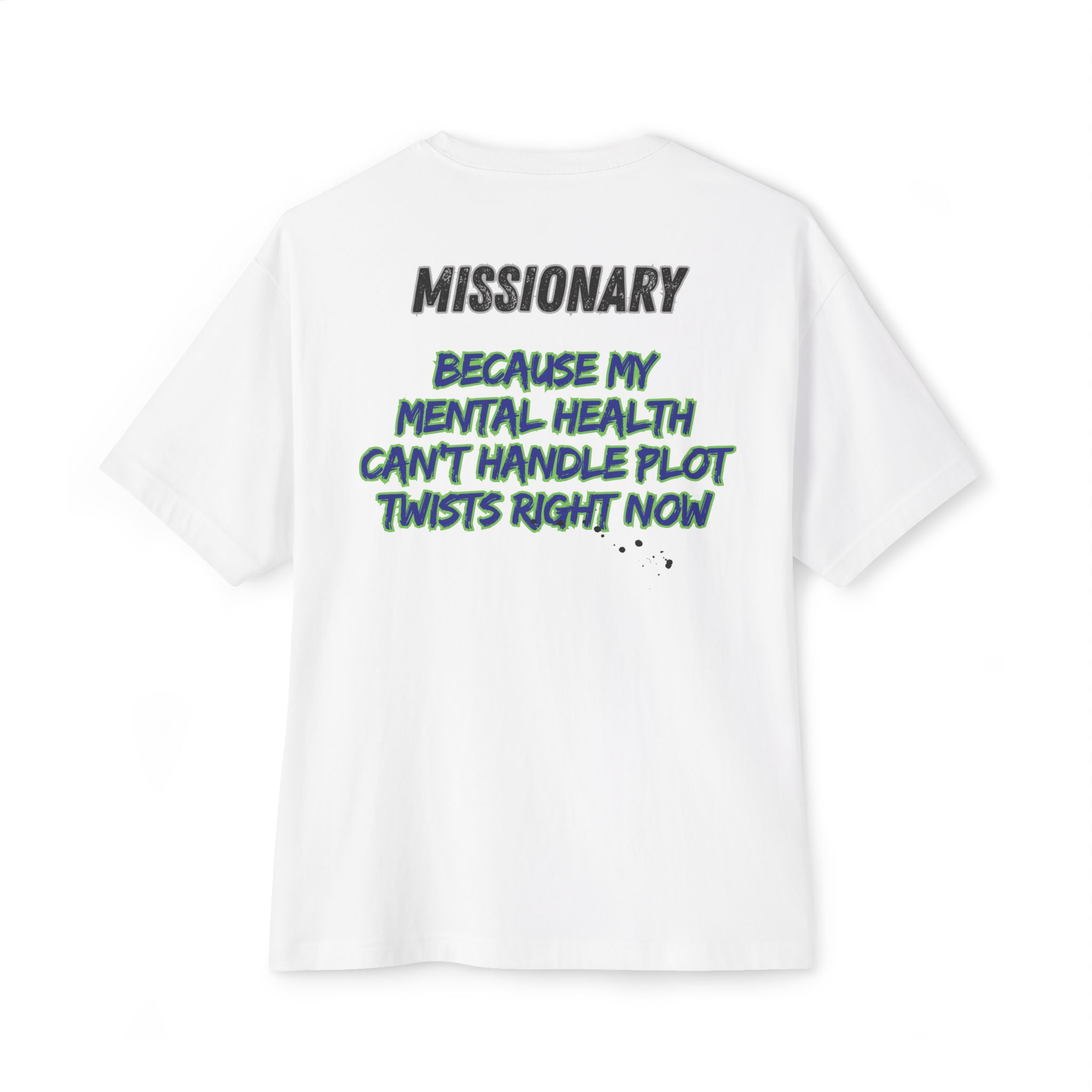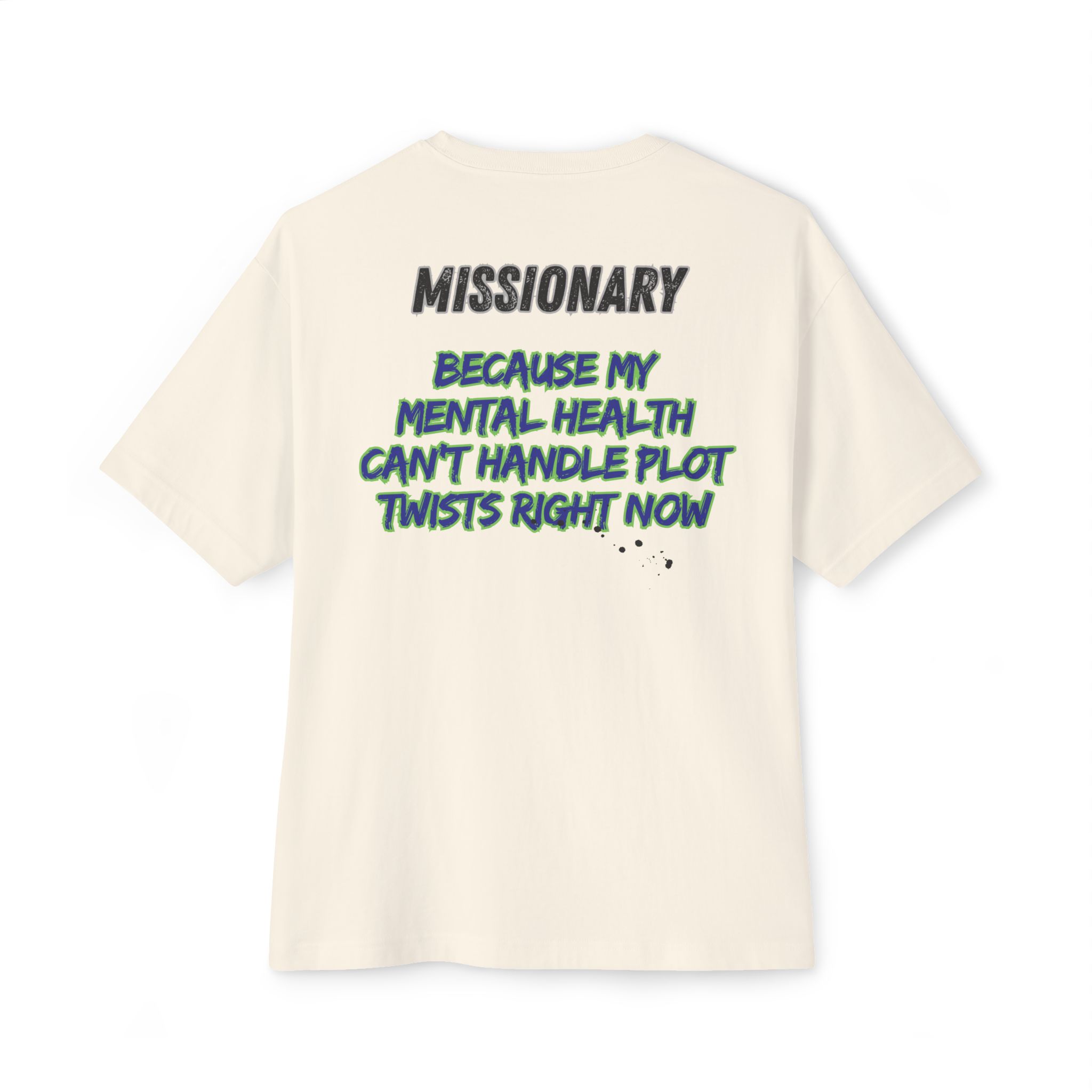The Missionary Tee is for the emotionally stable (or at least pretending to be). With its retro distressed text and bold contrast colors, it’s the ideal uniform for anyone who’s just trying to keep things simple in every way possible.