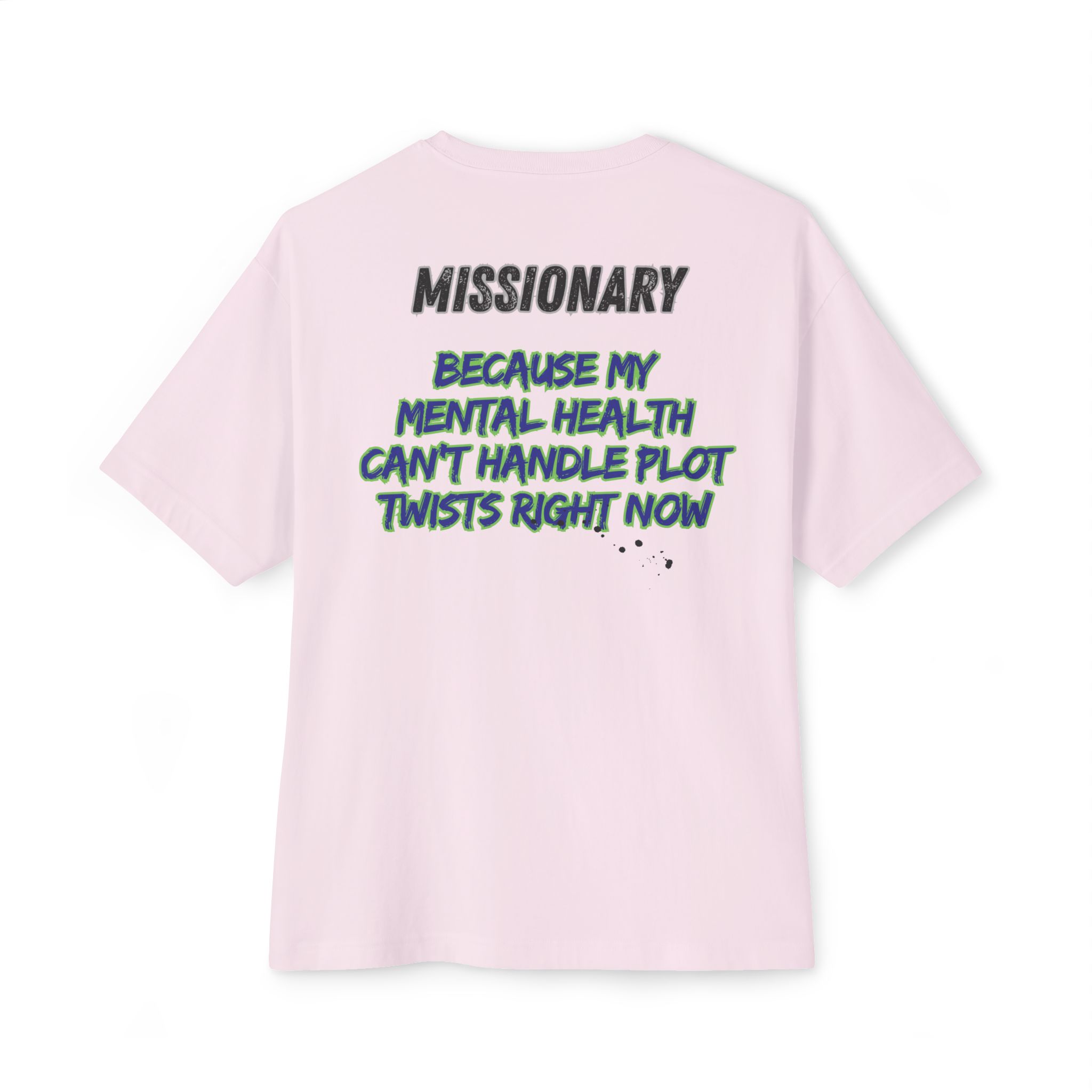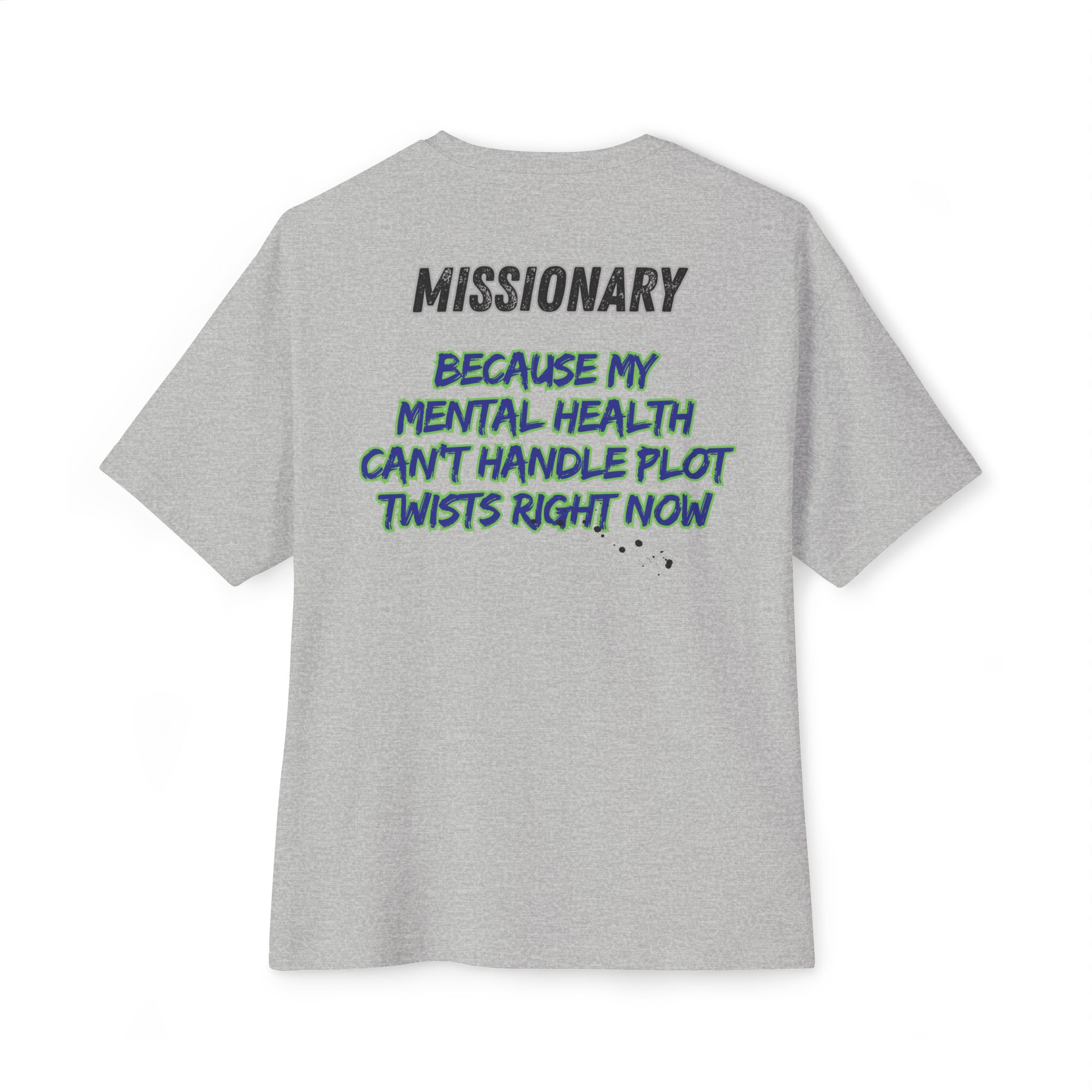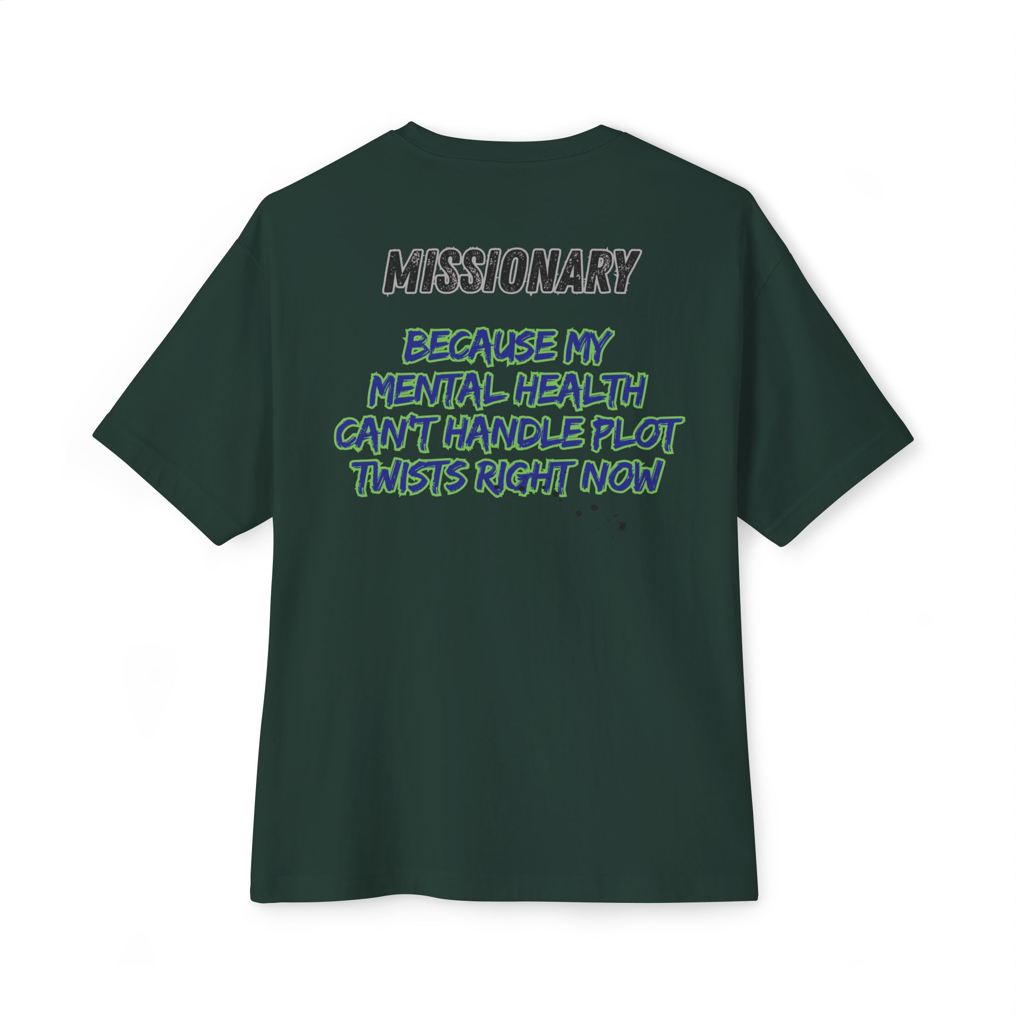 The Missionary Tee is for the emotionally stable (or at least pretending to be). With its retro distressed text and bold contrast colors, it’s the ideal uniform for anyone who’s just trying to keep things simple in every way possible.