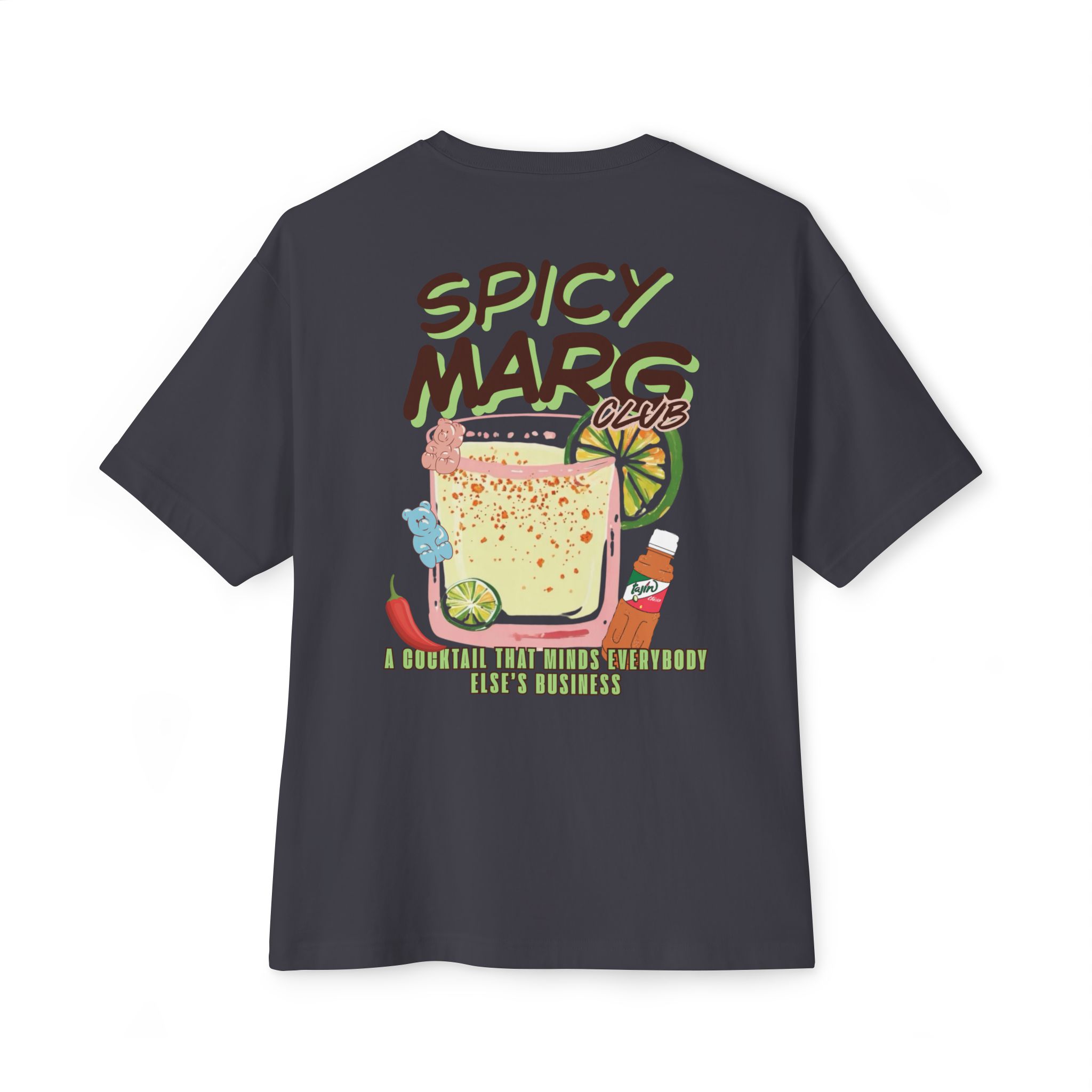 Vibrant spicy margarita graphic – complete with Tajín chaos and gummy bear cameos