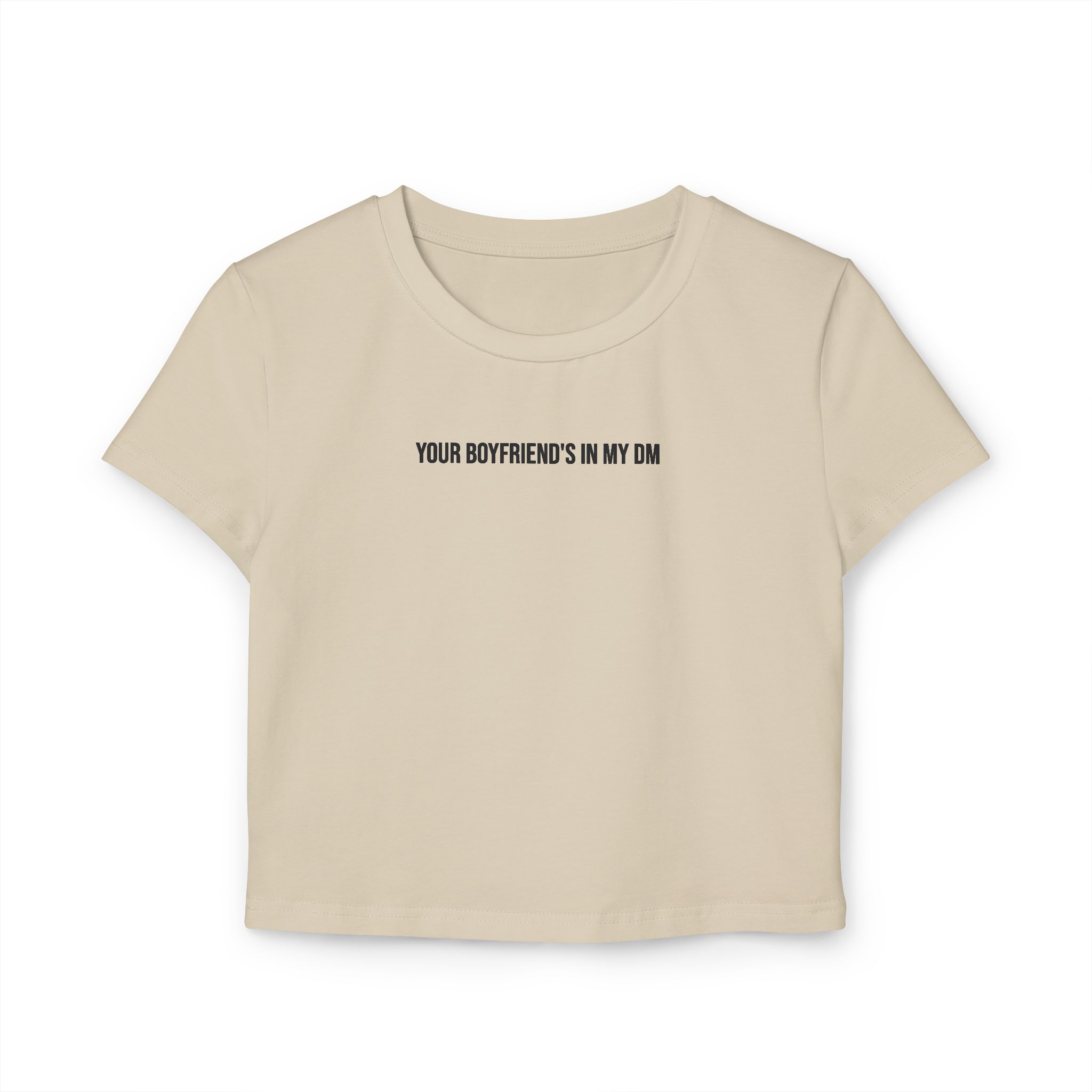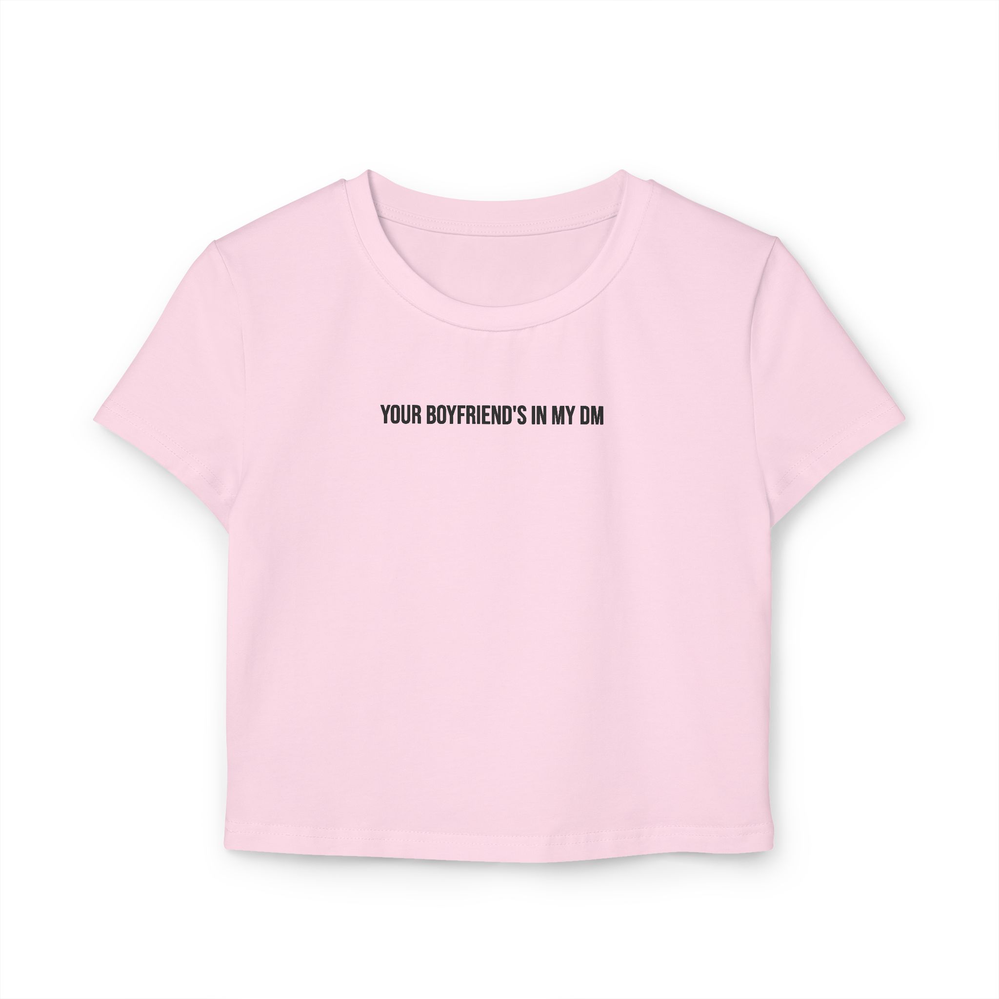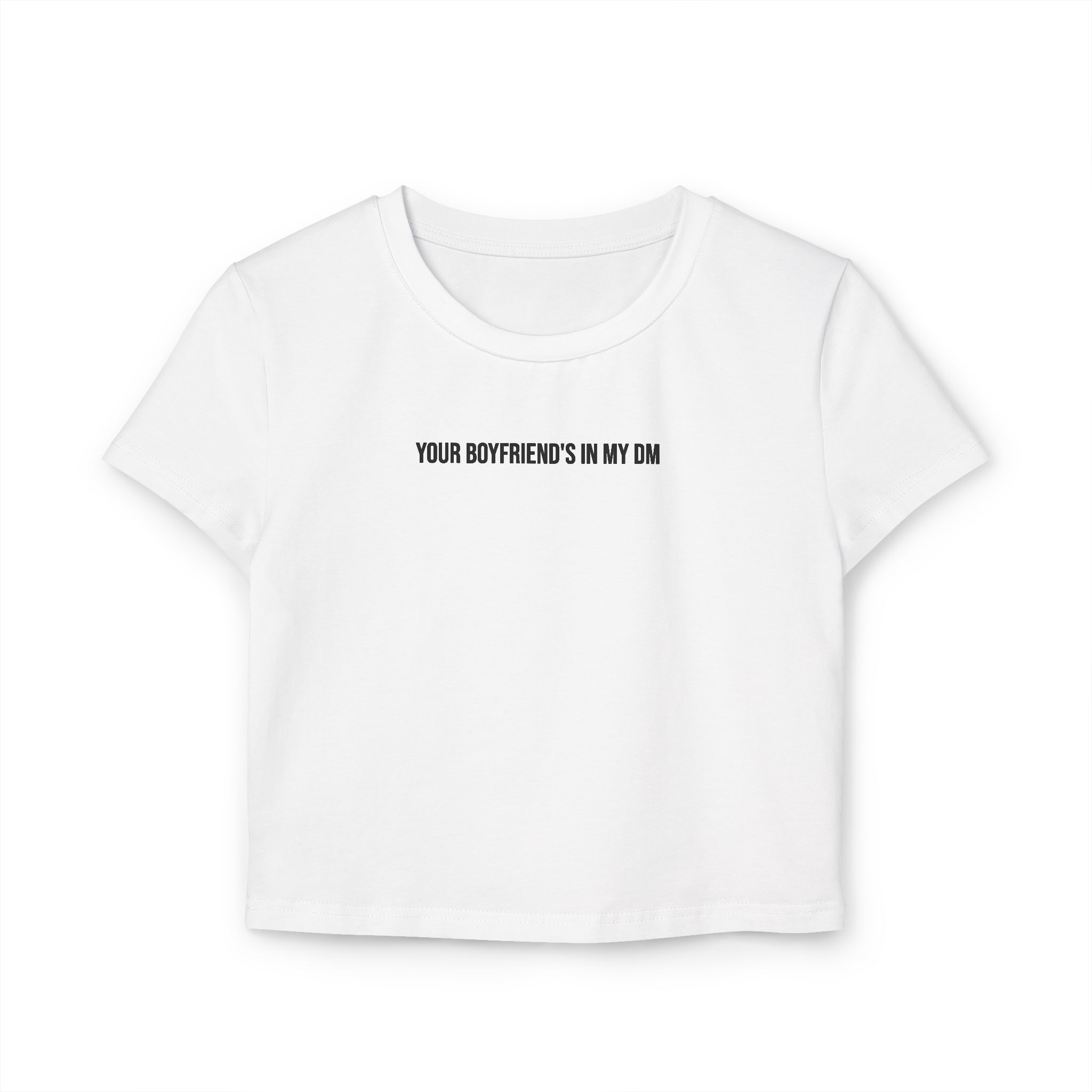 The Your Boyfriend’s In My DM retro crop top is a cropped confession and a walking warning. Made for the girls who didn’t ask—but still got the screenshot. It’s bold, unapologetic, and hotter than your man’s last 3 likes.